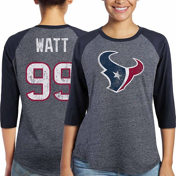 Women S Majestic J J Watt Navy Houston Texans Player Name Number Tri Blend Three Quarter Sleeve T Shirt